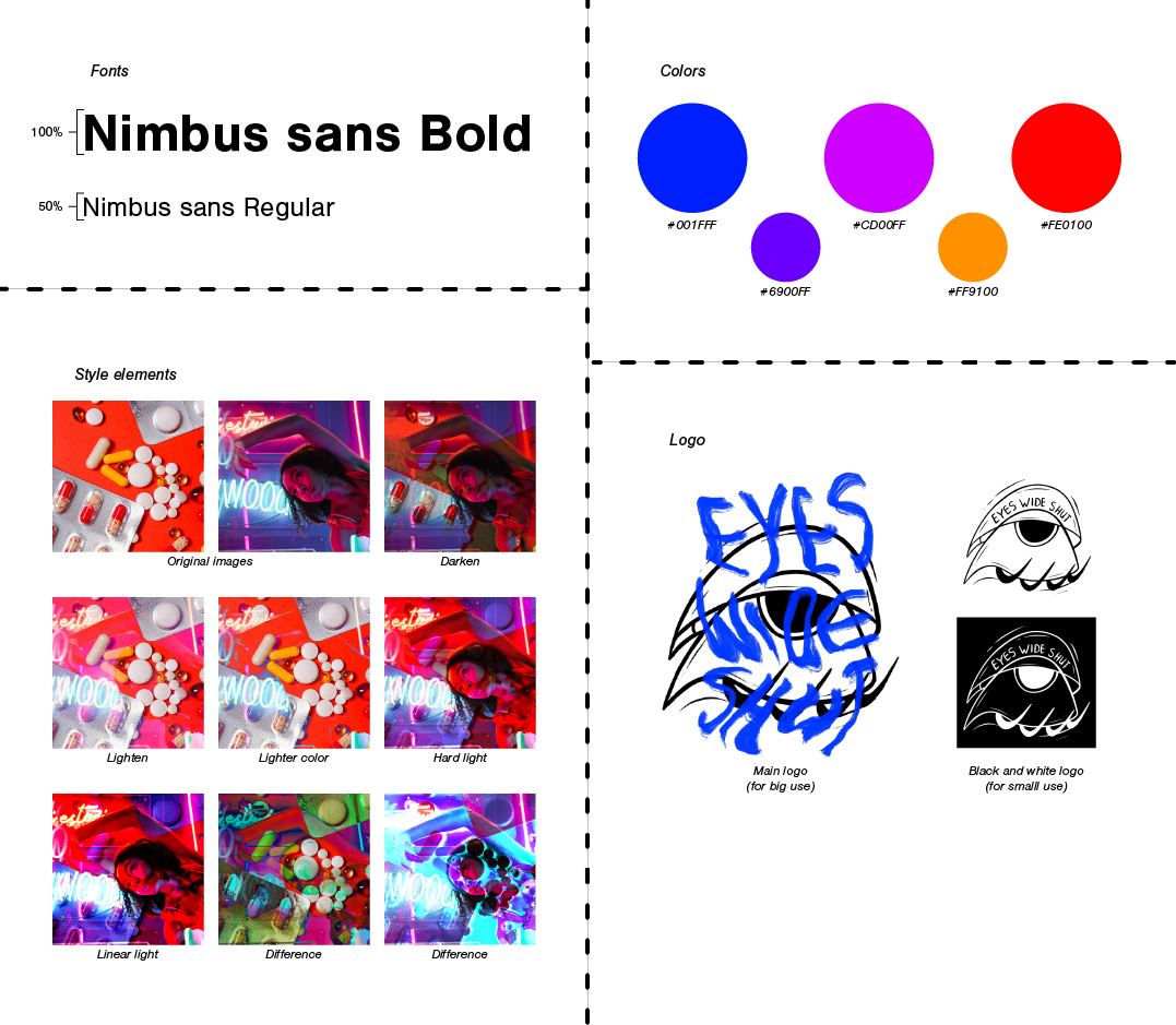 Tijdens de minor Design for Social Change heb ik samen met zes andere studenten gewerkt aan een opdracht voor het Openbaar Ministerie (OM). De vraag vanuit het OM was: Hoe kunnen we jongeren activeren om vaker met elkaar te praten over de indirecte effecten van het gebruik van synthetische drugs? De campagne die we hiervoor ontwikkelde noemde we: Eyes Wide Shut. Dit staat voor de grote ogen die drugsgebruikers krijgen, terwijl ze geen zicht hebben op de gevolgen hiervan. De minor wordt gegeven op de Hogeschool van Kunsten Utrecht (HKU). Er doen verschillende internationale studenten aan mee. Vandaar dat de minor in het Engels wordt gegeven. Hieronder staat eerst onze 'video narrative', hierin wordt het probleem en de oplossing uitgelegd. Daarna staan er verschillende uitwerkingen die ik gemaakt heb.